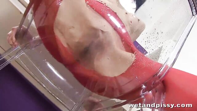Description:Mia is back for another scene at Wet and Pissy and this time she means business. Dressed in red pantyhose and a yellow tank top, Mia is teasing in the office. She runs her hands all over her body before she pulls down her pantyhose and fires a stream of piss into the air. It covers her tank top and even part of her pretty face! Mia dives into her own puddle of pee and pours some into her mouth. Taking off her tank top, Mia uses it to wipe up her wet mess and then wrings it out over her tits. She cuts a hole in her pantyhose and releases a massive piss on a glass chair while we film from below. Mia rubs her pussy and ass in her piss puddle before lapping it up with her tongue. Finally, Mia pees into a massive goblet, pours it all over her head and fucks her dripping wet pussy with a glass dildo. So hot!!!