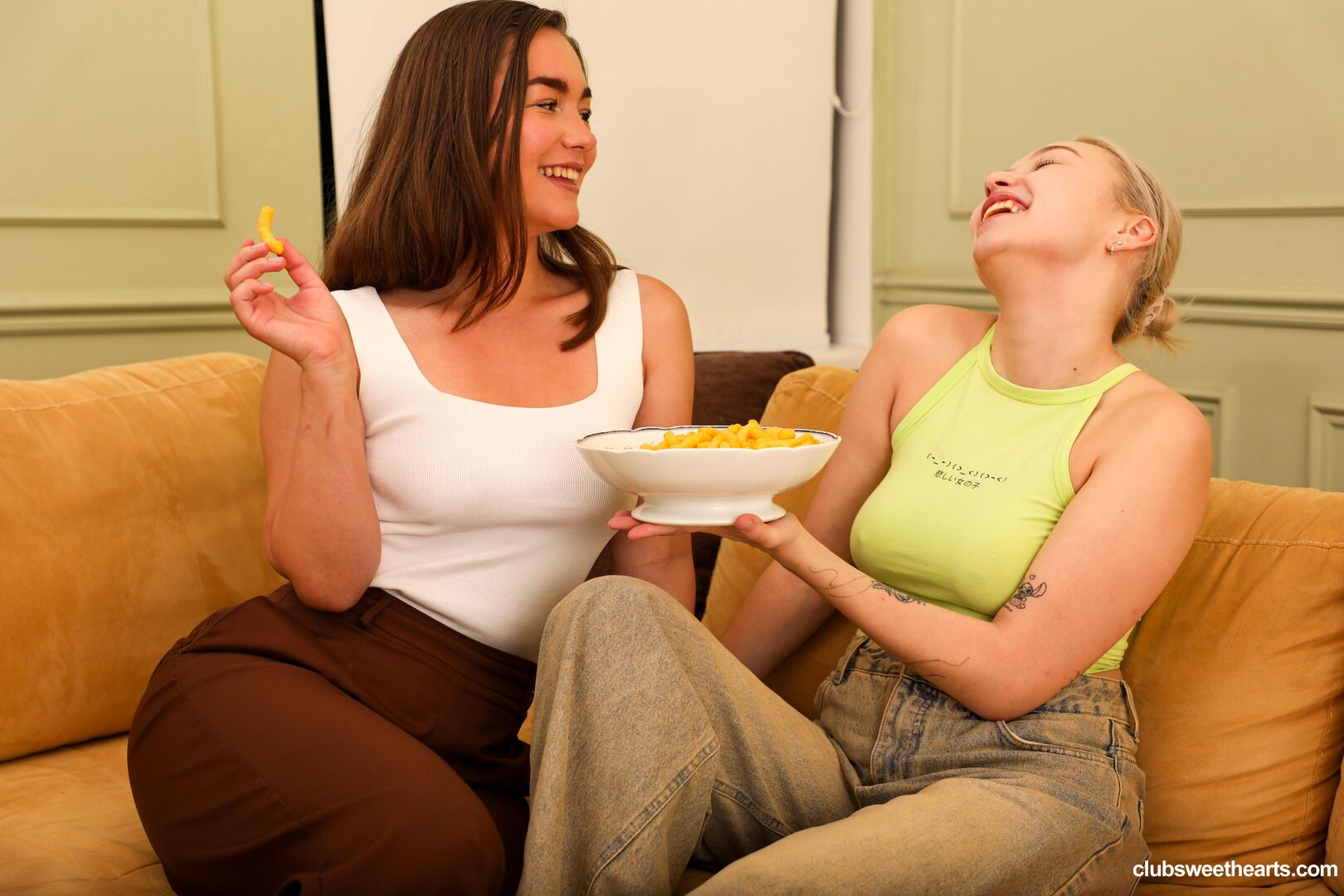Description:Come play with Sara and Hazel! Our two sweethearts can’t wait to tease you and have fun together. The bubbly blonde and curvy brunette love kissing, giggling, and touching every inch of each other. They rub their big tits, lick smooth shaved pussies, and grab juicy asses while moaning and laughing. So what are you waiting for? Come join the fun!