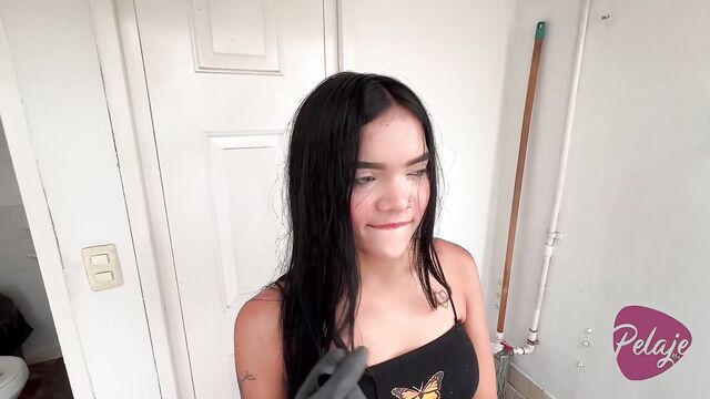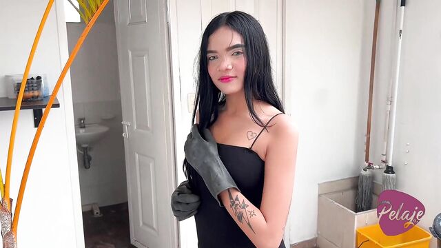 Rubber gloves dirt with stunning dream girl from Pelaje Mix