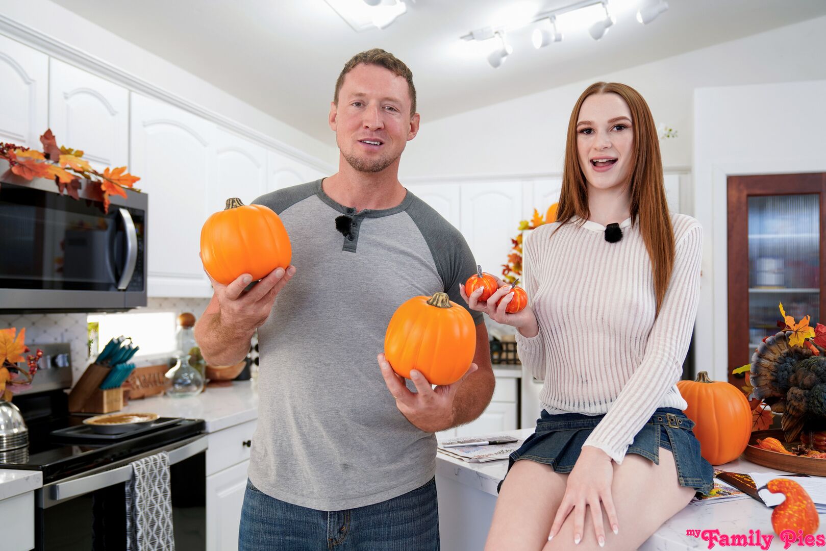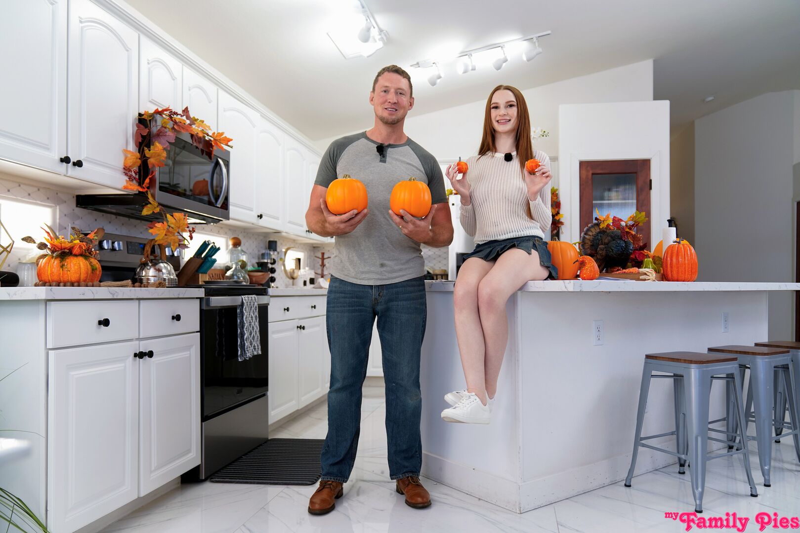 Description:On today's episode of Stepdad How Do I, Pierce Paris is here to show everyone how Halloween is done with the help of his stepdaughter Harley Love. They begin with Pierce explaining how to paint pumpkins as a craft while Harley removes her bra beneath her sheer shirt. Then Pierce shows off how to make s'mores while Harley demonstrates that she has ditched her thong beneath her miniskirt.When Pierce goes on to talk about making homemade pumpkin pie, Harley wanders into the room in an apron and nothing else. She claims that store bought is just as good, and that he'll have more time afterwards. That's all Pierce can stand; he ducks his head to eat Harley's pussy pie. Then Harley sucks down her stepdaddy's dick.After Harley's deep throat BJ, she gets on her knees on the stool so that her stepdad can pound deep into that creamy coochie. She gets on her back next, spreading herself all the way out so Pierce can fuck that landing strip snatch. When Pierce cums in Harley's tight twat, Harley dredges her fingertips through her treat and announces that she enjoys his sweet cream.