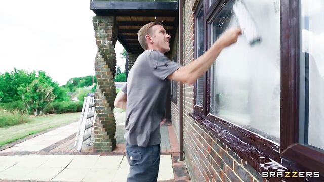 Description:Scarlett Starr is enjoying some me time playing with her pussy when wacky window washer, Danny D, shows up at her window. Scarlett quickly shuts him out of the show but doubles back to give him a quick cheeky peek. Danny decides to take his dick out, not realizing that behind the freshly closed curtains is Scarlett’s boyfriend. Her man can sense she’s up to no good and peels back the drapery to reveal a now naked Danny with his dick in his hand. Her boyfriend stomps off on a rampage. Scarlett sets her eyes on Danny's giant cock and slips him in the window, forgetting completely about her man. Scarlett’s only concern is riding the window wanker's huge rod, and she gets to work on his dick quick.