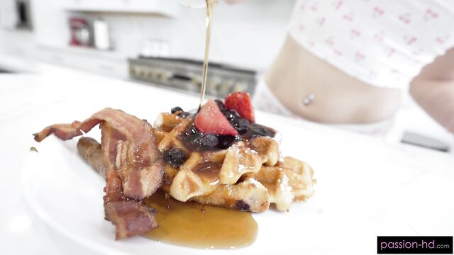 Gracey treats her man to breakfast in bed with waffles and pussy!