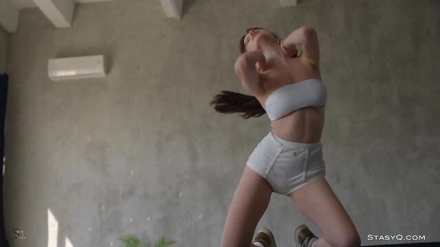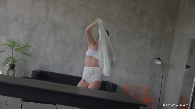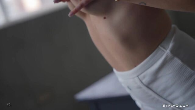 Description:This sultry goddess will show you how even a pair of plain, white panties can be the world's sexiest lingerie. The name of this StasyQ model is ToreeQ. She is the absolute star of Video Release 673, which stands out for its unique aesthetics. Instead of hopping into lacy lingerie, ToreeQ chooses a pair of white panties, a simple top, and sneakers. All casual and playful, the gorgeous brunette hops on a table and takes her top off. Her breasts are absolutely divine, with a pair of pink nipples that stand as hard proof of her arousal. Soon enough, ToreeQ takes her panties off, and you get to see her flawless skin, long legs, and that incredible booty of hers. Stay long enough, and the vixen will show you how she careeses her body, how she treats her breasts, and just how much she wants you to stay around.