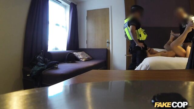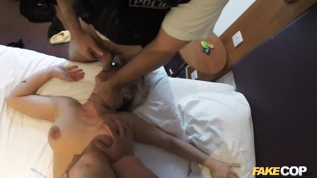 Description:My little black book of escorts was filling up nicely. This one is a delightful young Czech escort working out of hotel room near Heathrow so I decided to check her out. This time I brought an extra policeman’s uniform so I could play ‘good cop, bad cop' with a buddy of mine, you might know him! I had the pleasure of frisking our hot European perp and she was more than happy to have my hands all over her body. She even took off her clothes to make sure I could get a good look. Such a willing and co-operative young lass! She dropped to her knees and slowly started to suck my cock. My partner wanted in on this action and in no time she had both of our meaty truncheons in her hand, mouth and pussy.