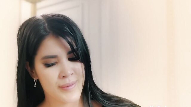 Description:Tattooed brunette bombshell Lady Dee, lips plump and ready, kneels in sheer lingerie and stockings, oil dripping down her shaved skin and natural tits. She deepthroats Nick Ross and Ridge Crix’s massive cocks, gagging sloppy while an ass plug stretches her tight hole. Glamour turns filthy—the plug pops out, and both studs slam into her, double penetrating her pussy and ass in a sweaty, screaming threesome. Long hair whips as she rides one dick while the other pounds her backdoor. Sensual babe begs for cum; both pull out, blasting thick loads all over her gaping ass in a sticky double cumshot finish.