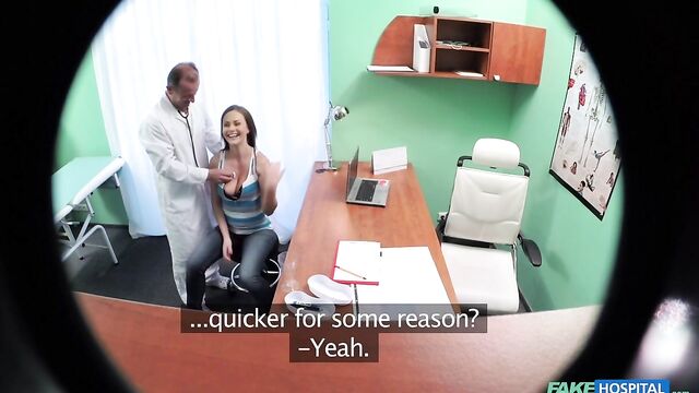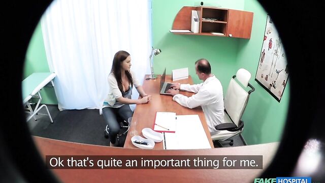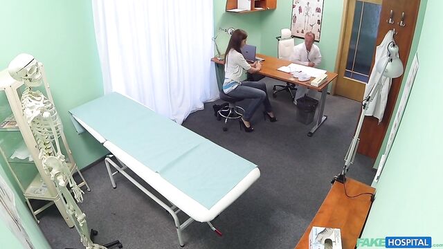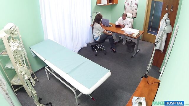 Description:The saying work hard, play hard definitely applied to an exchange student that came to see me today. She was new to the country and had been highly recommended to our clinic by some friends of hers. This beautiful brunette wanted to register with us, and have a basic check up. So I started with the basic tests, but I could tell from our conversation that she wanted more, so I naturally obliged. It got to the point where she was naked on the bench and I had inserted a thermometer in her pussy to gauge how hot it was! She then begged for a deeper examination. If this was a poker game I'd have to go all in. In a matter of seconds she had ripped down my pants and was greedily sucking and licking my cock and balls. She then got the deep exam she craved when I plunged my cock into her soaking wet pussy. From here it was a mixture of furious fucking culminating with me shooting hot streams of cum over her back and ass. As we were wiping ourselves down she told me she felt fully tested and could now go back to her biology studies. I on the other hand needed a cold shower and get ready for more clients.