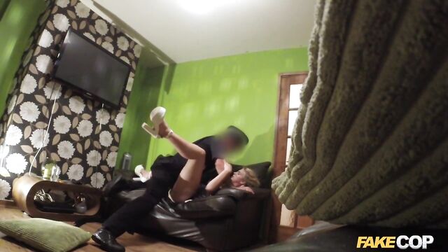 Description:Whilst on routine patrol, I spotted a busty blonde on her apartment balcony. As soon as she saw me she went back inside. That looked rather suspicious to me and a perfect excuse for me to go knocking on her door. I knocked on her door to find out if she was up to anything naughty. She explained that she was just having a night in. I asked her if I could come in and take a look around. She agreed to let me in her apartment to prove that she had nothing to find. I told her that I was just patrolling the area and that I enjoyed meeting the residence, especially those as sexy as she was. She took the compliment very well and we got comfortable in her living room. As she had nothing better to do, I suggested that we had a party all of our own. This was music to her ears. She whipped out her big bangers for me to have a suck on. She had fantastic big boobs that bounced like crazy as she rode on my rock hard cock. Her pretty blonde face took the full force of my load as my cumshot rebounded of her cheek.