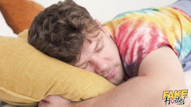Description:Blonde babe Jayla De Angelis and brunette baddie Alyson Thor come into their room in the Fake Hostel to see Michael Fly sprawled out in the bed. Thinking Michael is unaware, the ladies sneakily shake their bums and spank each other. Not wanting to spoil the fun, Michael doesn't move a muscle as they suck each other's titties, then strip naked to eat each other out by the bedside. The ladies take out a vibrator and start tribbing, then notice Michael has gotten hard! Alyson climbs on top of his cock and starts to ride Michael while Jayla plays with her pussy by his head, then covers the other two in squirt. Alyson squirts too, and by the time Michael has made them both cum, the bed is soaked through. Jayla sucks Michael's cock until he cums in her mouth... then she spits it all over Alyson!