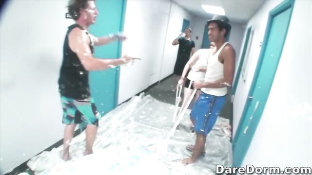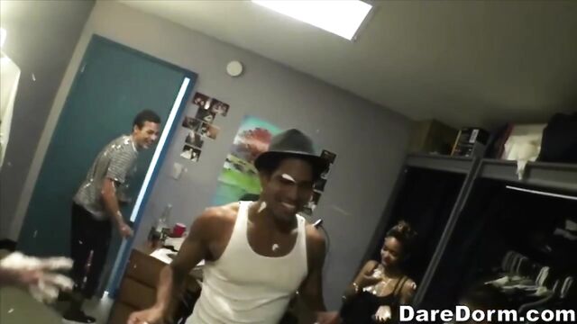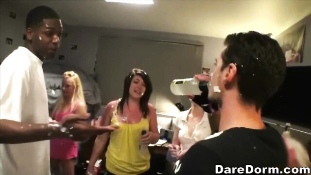 Description:This is another legendary episode of daredorm. These college punks really did it this time. They managed to through a tug a war, whip cream party. What more can you ask for. It looked like they got like two hundred dollars worth of whip cream, and a small pool, a rope, and a lot of crazy, fun loving college chicks. After the tug a war, everybody jumped into the dorm showers, and that's where things got interesting. The college sluts starting blowing the guys and once they got back to the room, the real sex party started. like I wrote earlier, this episode is legendary!