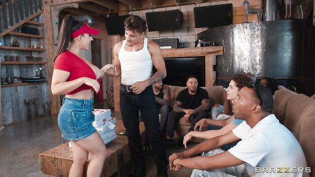 Description:Angela White is the hottest pizza delivery woman in the world, and today she is bringing the goods to a bunch of hungry bros. She realizes one of the guys is a former fling and, feeling horny on the job, sneaks off to give him a blowjob in the kitchen. Soon the other guys find them, just when she's ready for more cock. Enjoy this piping hot blowbang from porn star legend Angela White!