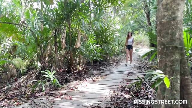Sexy brunette loves to pee in public place