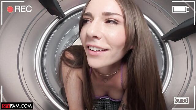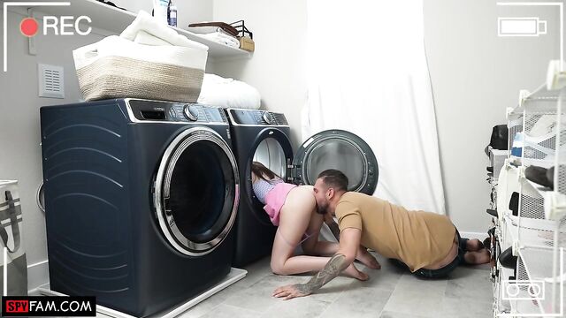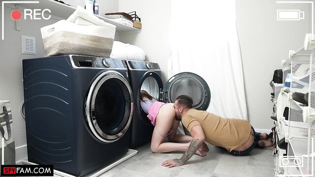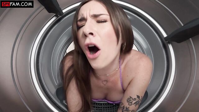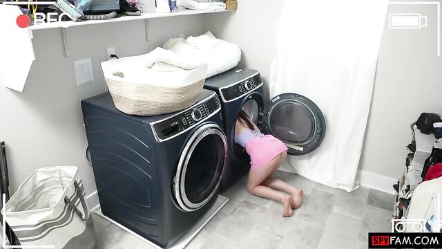 Stepdad gives his stepdaughter a helping hand when she gets stuck in the dryer!