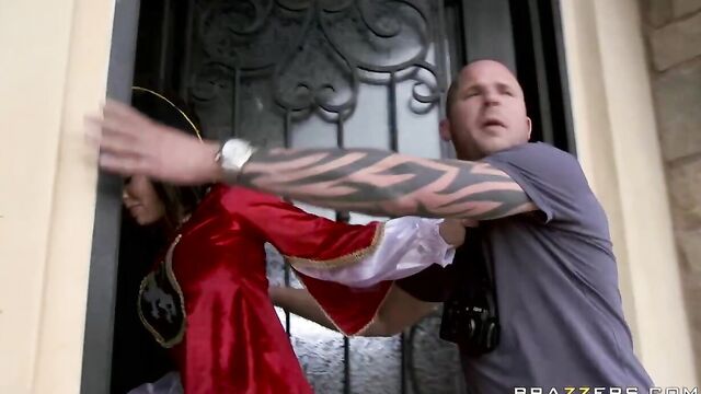 Description:Rachel is on duty as a royal guard outside a gated mansion when Scott walks by. He's touring England and notices this hot woman guard with great tits, so he starts admiring. He can do what he wants ss long as he doesn't touch her or try to enter the mansion, so he decides to have some fun. A loud bell rings signaling the end of Rachel's shift. She drags Scott inside and teaches him why tourists don't mess with the royal guard!