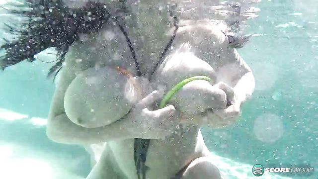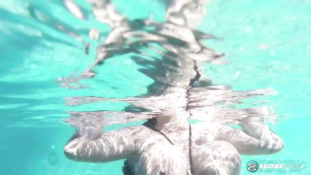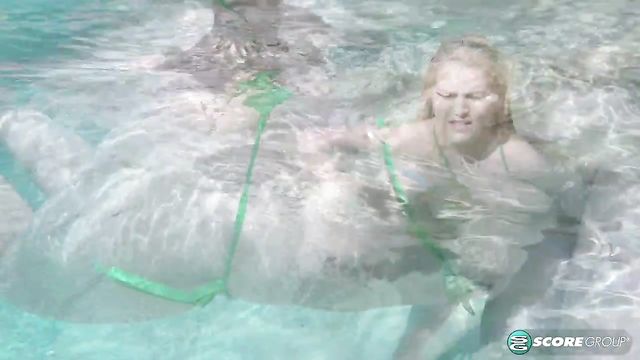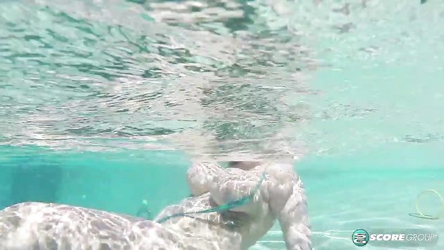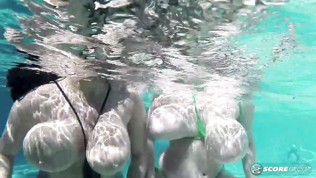 Description:The second challenge in On Location North Coast is directed at the titillating trio of Daria and the Star sisters Helen and Erin at poolside. Daria and Erin are rubbing suntan lotion on Helen's boobs to protect her delicate, soft skin when SCORE magazine editor Dave's video-call comes in from the office in Miami. "Girls, the next challenge is to dive into the pool and collect the rings tossed into it. The winner will be the girl who collects the most rings. Good luck." The rings are tossed into the pool. Erin, Helen and Daria dive in and the underwater camera follows them as they swim, their huge breasts floating and bobbing. The girls take off their extreme string bikinis and create a unique way of collecting the rings. But first, they dance in an underwater ballet of boobs.