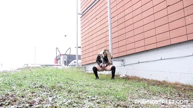 Sexy blonde loves to show her peeing pussy