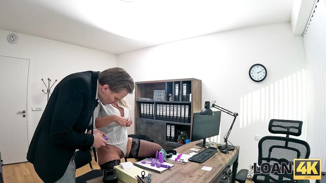 Loan4k featuring Jennifer Mendez and Stanley Johnson's sex toy testing scene
