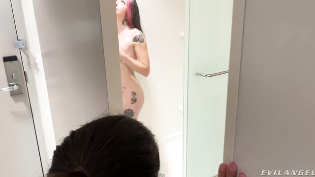 Description:Tattooed, natural-breasted brunette doll Brenna McKenna showers, the camera taking in her delectable anatomy. Draped in only a thin towel, her MILF stepmom, Francesca Le, peeks in on unsuspecting Brenna. Francesca barges in, drops the towel and joins her stepdaughter in the stall for some taboo lesbian fun! Brenna plays with Francesca's big tits. Francesca rubs her body against Brenna's frame. She kneels to suck on Brenna's box with greedy indulgence. Brenna eats out Francesca's pussy and worships her ass with a rim job. Dominant Francesca presses Brenna's head between her rear cheeks. On the shower floor, they share deep, passionate kissing, bringing the forbidden tryst to a passionate finale.