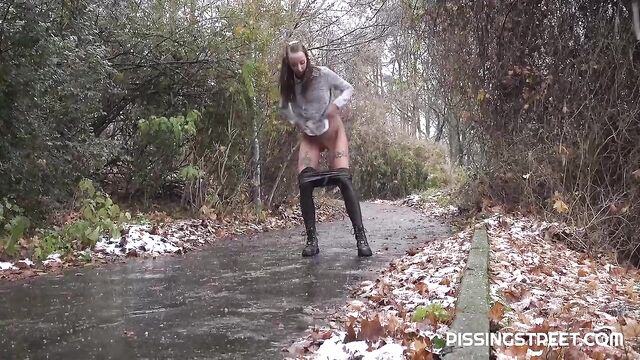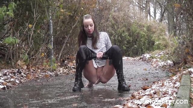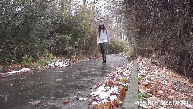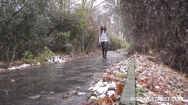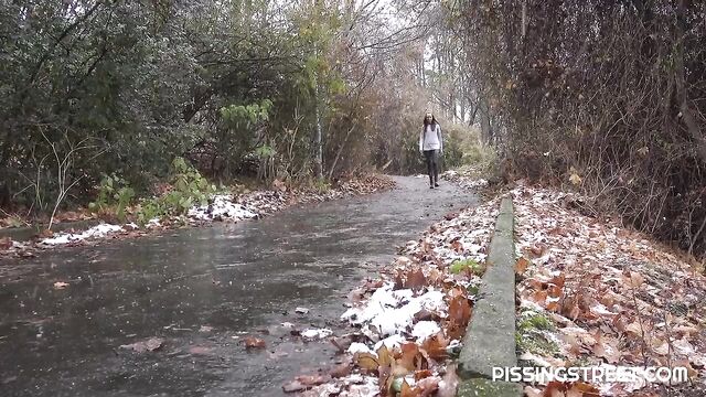 Just a small stop and a quick pee on a walk in the woods