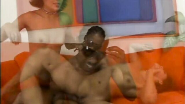 Ebony whore riding on his massive cock and making herself cum before he cums in her mouth.