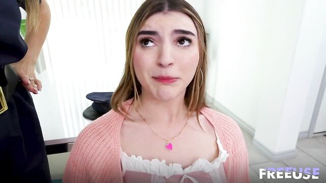 Description:Being the backbone of the family is hard, but being a female cop makes it even harder. I need to set a good example for my stepson, be strict, and make sure he's always on the right path. When I caught him getting his cock sucked in the middle of the street, I had to intervene and find out who that slut was. She even had the nerve to have her face covered in my stepson's cum and lied, claiming it was ice cream! I had to lick it off her cheek to show them they couldn't trick me. I could tell he really liked this girl, but I want him to marry a good, traditional woman, so I arrested her and took her back to my place for interrogation. She was very nervous, so I thought she might be hiding something and had to do a cavity search. I lifted her pretty skirt and slowly shoved my fingers inside her pussy. Her cunt was very tight, and she said she was a virgin, but if she was going to date my stepson, she needed to loosen it up, so I asked him to fuck her. Suddenly, she started licking my tits! I like a woman who helps without being asked. The more she touched me and shared my stepson's dick with me, the more I liked her. Having my stepson's cum in her face didn't seem too bad when it was mixed with mine. I think she might work out after all.