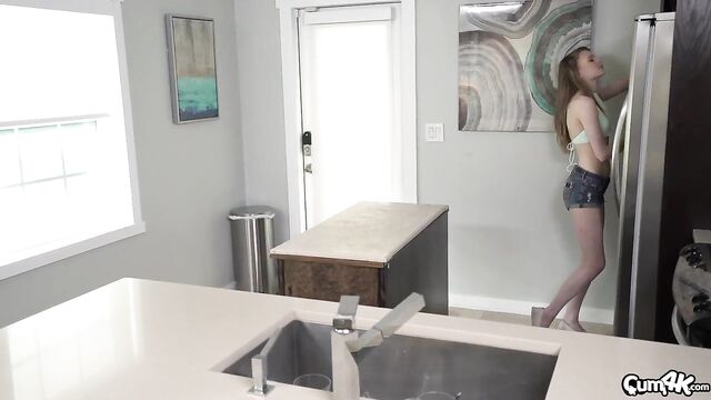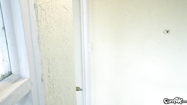 After breaking in, Jessae Rosae is masturbating and gets caught. The only thing she can think to do is suck his cock and let him cum inside her.