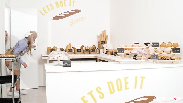 Description:The girls can't keep their hands off each other even when customers are standing right in front of them. They get caught fucking with a strap-on dildo, but even that doesn't stop them, and they tell the shocked clients to take what they want so they can finish the job in the back room. When a third hot girl staff member walks in on them, she joins the fun, and the three horny beauties fuck like rabbits until everybody cums.