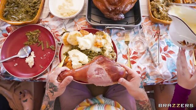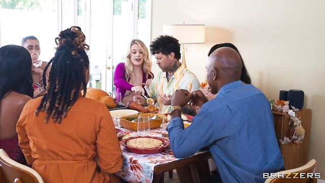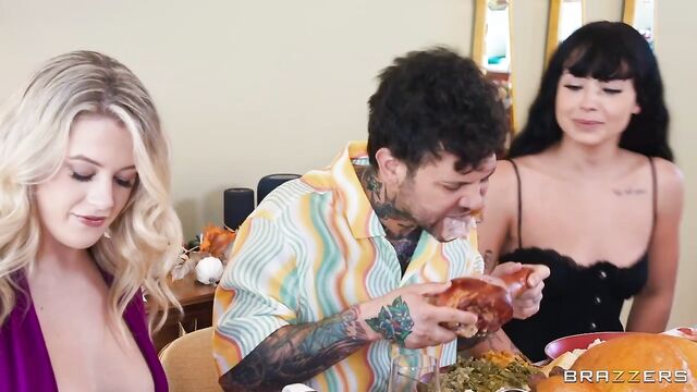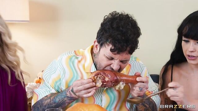 Description:When Small Hands accidentally ends up at the wrong Thanksgiving gathering, horny Ashley Alexander and her friends, Baby Gemini and Beca Barbie, make him feel right at home... and then some! Forget mingling and eating, because to fit right in, Small Hands needs to get down to fucking. After Baby Gemini corners him in the kitchen for a blowjob, he slips away to the bathroom for a quickie with Beca, all while eating in between. The main course, though, is Ashley, who shows she can heat up Small Hands’ pumpkin pie while gobbling up his massive cock.