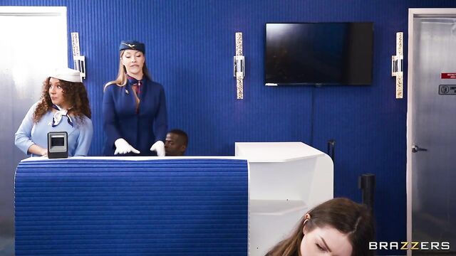 Description:It’s the holiday season, and a storm has grounded all flights. As restless passengers start to behave badly, Ace Hardz looks to get lucky. Embarrassed by his girlfriend’s Karen-like behavior, Ace cozies up to free-spirited traveler Aleksa Mink for a quickie blowjob. Still looking for more, Ace attempts to join the mile high club with smoking hot flight attendant Melissa Stratton, who is thrilled to navigate the turbulence of a wild public fuck!