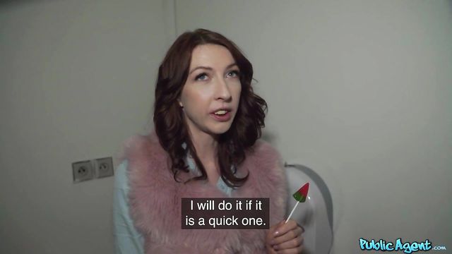 Description:We saw this brunette named Chanel Kiss hanging around outside, so we walked up and struck up a conversation. Chanel was waiting for a friend and spoke no English, so Martin translated for me. We told her I had a lollipop company, and we wanted to use her as a model for our new marketing campaign. She was hesitant, after all, we were strangers, but when I flashed a big wad of cash, she was interested. Since she looked so good sucking the lollipop, I thought she'd look even better sucking my cock! For a solid 15K crowns, she came with me to a restroom, and started to suck my dick. I'm quite hung, and this made her horny, so Chanel let me fuck her pussy standing doggystyle. I played with her titties as I fucked her, and when she got off, she got on her knees so I could cover her face with a facial!