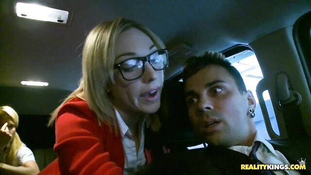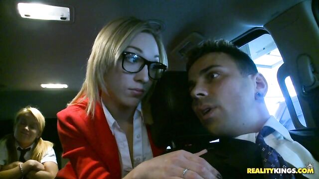 Description:Aiden and Lily were about to go to school, but they had a big test that they did not study for and were trying to find a way out of it. Their driver was about to take them to school when Aiden had a talk with him. She seduced the driver to not take them to school by stuffing his cock in her mouth. She sucked that cock well and the driver was persuaded not to take them to school. They continued the action in Aidens bedroom, where Aiden placed her pussy on his face while Lily sucked his cock well. They took turns getting their pussies pounded and got man juice all over Aidens pretty face and Lilys sweet pussy. No school today.