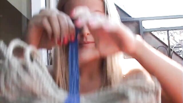 Description:I like to experiment with new things, so when I saw some bondage pix on the net I knew I'll try it also. But I wasn't prepared that I'd lie on the balcony, all tied up and the neighbours and passers-by would photograph me as well!