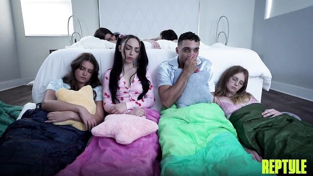 Description:What’s up, Gooners? We’ve got a brand new Reptyle Labs for you, and this one is totally out there. We’ve all heard of it, right? The “Gay” friend who gets to go to all the sleepovers? See the girls naked? Gets into their inner circle of trust? We’ve all wanted to infiltrate one of those special slumber parties ourselves, but how? Well. This experiment explores precisely that idea. Lucy, Scarlett, & Selina are about to learn a whole new side of Amone. When they learn he isn’t actually gay, and that he has a monster dick, they can’t wait to turn this innocent sleepover into a night of fun...