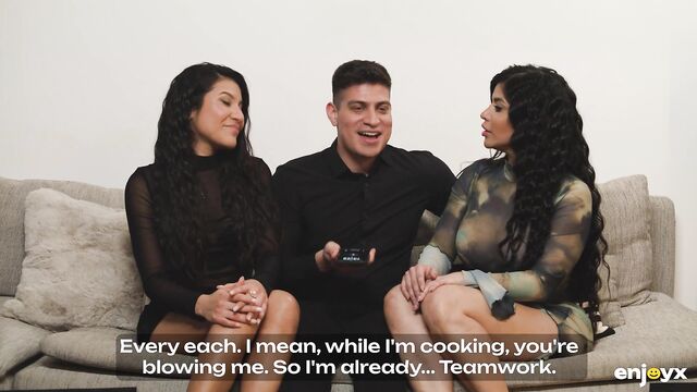 2 girls share cock dirt with funny Jason Carrera and Sara Retali from Enjoyx
