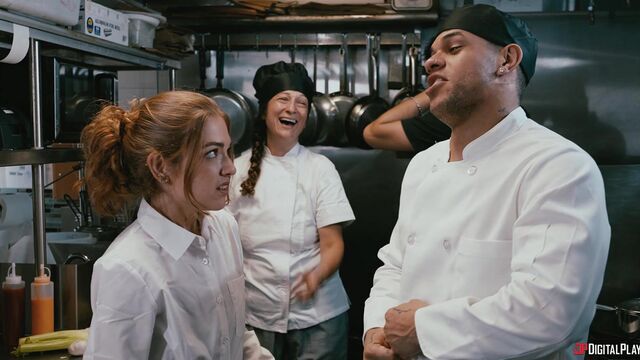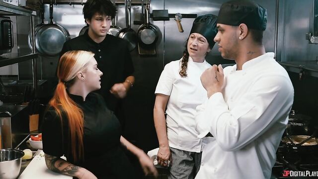 Description:Veronica (Cubbi Thompson) is the hot, hard-ass head chef at her own restaurant, often butting heads with her sous chef Paul (Mike Ox). A hectic dinner service ends with a pair of dissatisfied customers sending back a dish Paul prepared - but that a stubborn Veronica "fixed". Set over the edge, Veronica berates the customers and kicks them out, much to her staff’s amusement. Angered beyond belief, Veronica sends her staff home but keeps Paul behind after he mouths off one too many times. With enough tension between the two to be cut with a chef’s knife, things are about to get very heated in the kitchen!