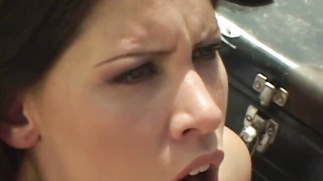 Adorable babe ass fucked outdoors and get her beautiful face covered with thick semen.