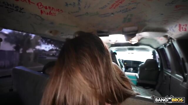 Description:Alana Rose was walking home when that famous van pulled up next to her. The van was so famous that she knew immediately what it was. All the signatures on the ceiling of the car. Yes this was the Bang Bus. She was a content creator herself. As a content creator you want to create content all the time. She wanted to get on the bus. In no time she was in showing off her cute tits and ass and masturbated until Tony Rubino got horny and pulled out his dick. She sucked it and started to ride him. Then they fucked until he came on her ass after a doggy.