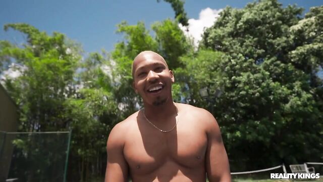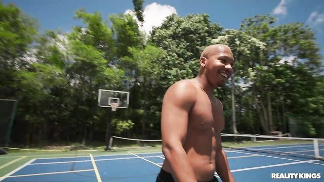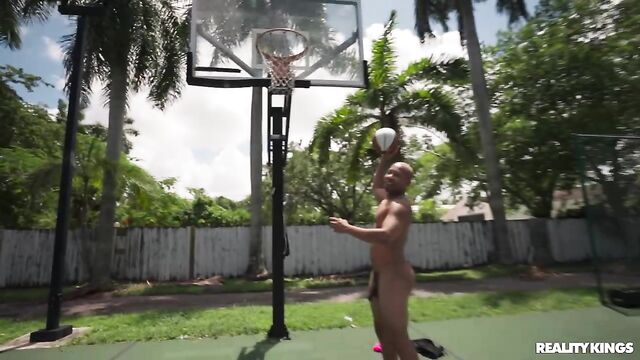 Description:Ricky Johnson and his buddy are shooting some hoops when they notice hottie Daisy Pheonix working out on the other side of the fence. Daisy's only too happy to join Ricky for a game, and she suggests that they make it more interesting with a strip twist! Pretty soon the two are playing naked one-on-one, and Ricky's impressed by her bubble booty while Daisy can't believe how big his dick is. He lifts her for an upside-down BJ and fucks her doggystyle. Daisy gets all the dick she wants and a big facial.