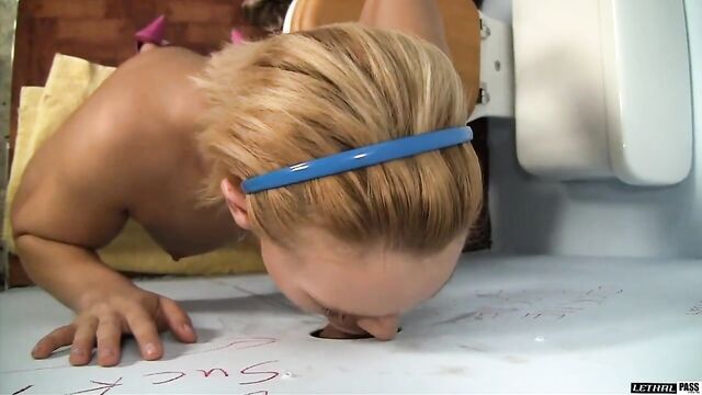 Description:Stunning blonde cougar Jamey James goes to the bathroom and notices that there is a hole in the wall. Upon further inspection she sees a man on the other side playing with his dick. She tells him to come over and put his big dick through the hole. She immediately gets turned on when she sees his big cock, and takes off her dress and starts playing with him. Jamey keeps sucking on his cock while she fingers her pussy, making herself come hard while she's blowing the stranger. She keeps blowing him and jerking him off until he cums all over her mouth.