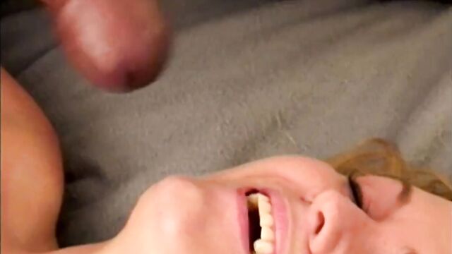 Blonde tries black cock for the first time and gets his steaming load in her mouth.