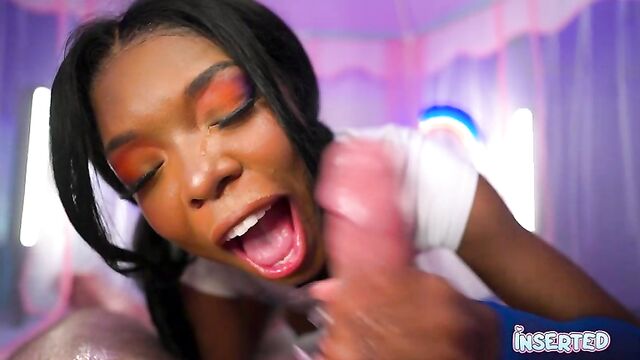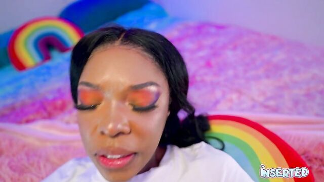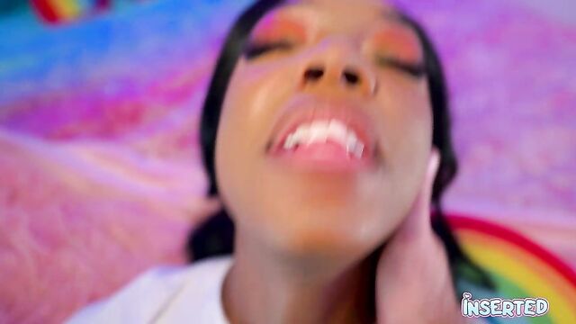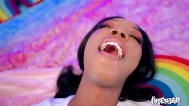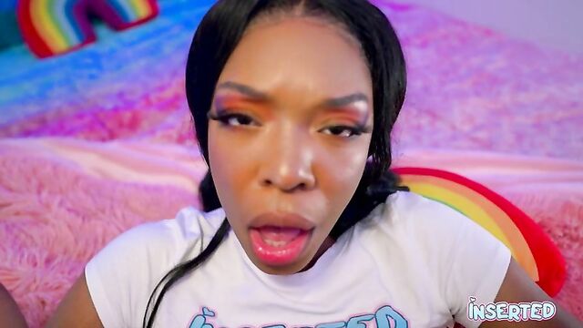 Description:Munro Blaxxx invites you to her cozy, pink haven. With her striking pink and blue makeup, she sits on a bed draped in a soft pink blanket, her long black hair cascading down her shoulders. She's wearing a simple white shirt, but her playful spirit is anything but ordinary. Her tongue peeks out, teasingly, as she sticks it out, inviting you to explore her mischievous side. Munro's eyes sparkle with a mix of innocence and desire, her hands gently touching her face as she playfully sticks her tongue out again. The room is filled with a warm, inviting glow, casting a pink light over her as she lays back, her body language screaming "come hither."Her outfit is casual yet enticing—a white shirt paired with blue pants, accentuating her curves. She moves with a confidence that's both cute and seductive, her every gesture a promise of the naughty fun to come. Munro's presence is electric, her energy drawing you in, making you want to be a part of her playful, adult world.