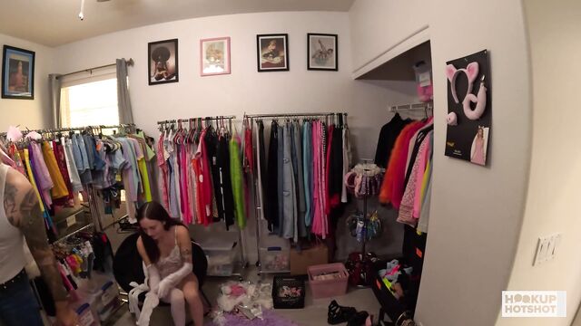 Gorgeous Bryan Gozzling and Tess Thompson at clothes smut