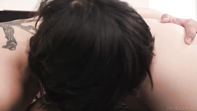 Description:Lucy Lotus is having an affair with Elias Cash . They are having hot sex in Lucy's bedroom when suddenly they hear Lucy's husband Freddy Mac unexpectedly coming home early! There's no time for Elias to sneak out, so Lucy quickly uses a blanket to hide the naked lower half of her body, and has Elias hide under the blanket too. She then grabs the TV remote and pretends to be innocently watching a show. Freddy then enters the bedroom, and decides to watch the TV show with her. He settles down on his side of the bed, not suspecting anything. Meanwhile, Elias is feeling naughty so he starts eating out Lucy's pussy and even fucking her from his hiding spot under the blanket! Lucy clearly loves everything that Elias is doing, but she struggles to hide her pleasure because she doesn't want Freddy to find out what's going on. Eventually, Freddy leaves. Lucy lightly chides Elias for doing something so risky, but they're both so horny that they quickly continue fucking!