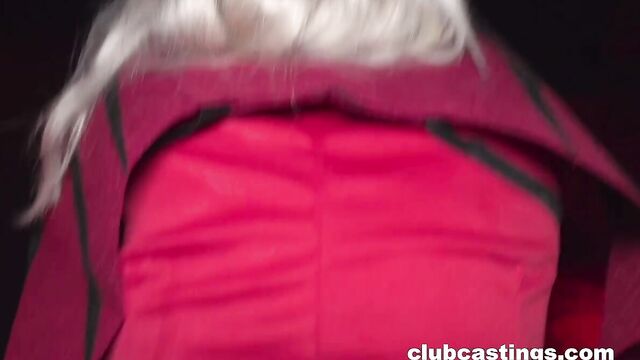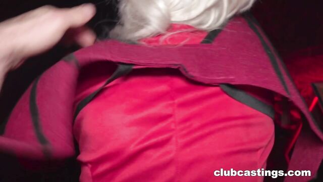 Description:Clubcastings presents a filthy casting scene where horny blonde MILF Bimbo Barbi shows up dressed as a little devil—black lace mask, red satin dress, high heels, and devilish attitude—to "audition" for a job again. She teases the camera with upskirt flashes of her shaved pussy, then drops to her knees for a sloppy blowjob, sucking Peter Stallion's thick cock deep and gagging like a pro. The long-haired bimbo strips slow, shaking her big tits and ass in cosplay style before bending over to get pounded hard doggy. Peter slams her wet hole until he fills her with a hot creampie, cum dripping out as she smirks in satisfaction. Total MILF stripper-to-slut hardcore fantasy!