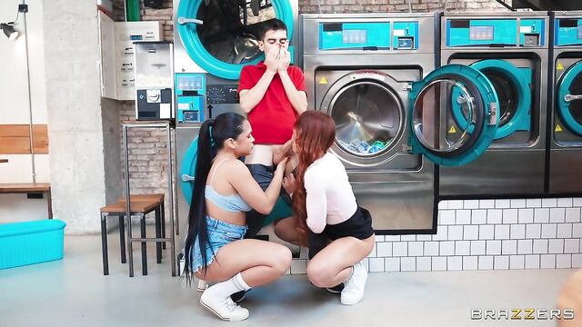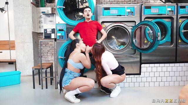 Description:Jordi is an employee at a laundromat. Alexis Doll and Peach Lollipop are in there messing around while washing their clothes, Jordi doesn't like it until he realizes they are hot! The girls see that Jordi is into them and decide to take advantage of it. This can only be a win/win, right?