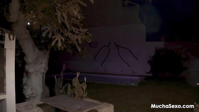 Description:Tattooed brunette MILF Irogenia, with her short hair, pierced nipples, trimmed bush, and juicy big ass, gets wild on the outdoor terrace. She starts in sexy lingerie, sucking David el Moreno’s thick cock deep on the table, slurping noisily. He bends her over the edge for hard doggy style pounding, her natural big tits swinging as he slams in. They switch to scissoring on the wooden surface, grinding pussies together in hot friction. Back to fucking right next to the table, he rails her standing until he pulls out and blasts thick ropes of cum all over her face in a messy facial. She rubs the sticky load across her pierced tits in this steamy MuchaSexo outdoor cumshot scene.
