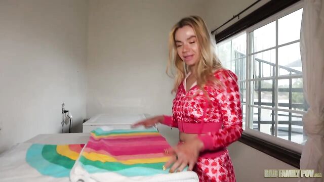 Description:Sexy blonde babe Angelica Coralvine is home folding laundry when her horny stepson gets home from school. Watch as this sexy stepmom bends over and lets her stepson go balls deep in her tight pussy.