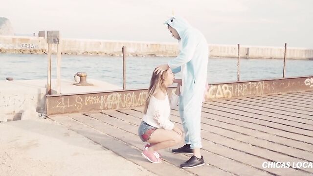 Description:Alberto Blanco wears a unicorn onesie outdoors. He gets to bang Dutch babe Taylor Sand and her sweet tight pussy in various positions on a dock. Finally, he glazes her trimmed pussy with cum.