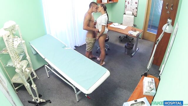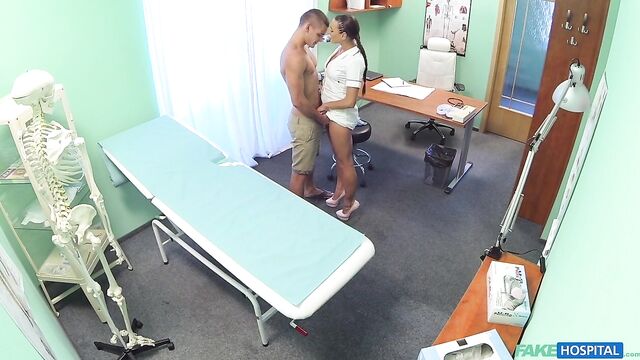 Description:I was cleaning the doctors office for him, he can be such a pig sometimes and leaves it messy, when a handsome young stud walked in. I knew the doctor was gone for a while so I decided to see what his problem was for myself. This ripped stud had got hurt whilst competing in combat sport and he was after some cream for his abrasions. I was after some cream myself and this guy was making my pussy drip with excitement. I told him to take his shorts off so I could examine all of him and he confessed to not having any underwear on. Then he shocked me by saying he had noticed that I was not wearing any either. Well the cat was out of the bag so there was no point wasting time. I lifted mu uniform to show him my wet, shaven pussy and he was instantly transfixed. I walked over to him and put his hands onto my pussy before reaching inside his shorts and grabbing hold of his long dick. As he kissed me we stroked each other and my pussy twitched with anticipation. I took him over to the examining table and devoured his cock with my mouth, sucking it deep down my throat and licking his balls. Soon we were making our own mess of the recently cleaned office as we fucked in lots of positions, exploring, licking sucking and probing. He fucked me hard and with great skill, I felt myself orgasm several times but time was running out. The doctor would be back soon so I told him to cum all over my amazing round ass. He fucked me hard from behind for a bit longer before pulling out and shooting a massive stream of his cum all over my arse cheeks. Now I'd have to clean the office again, but believe me it was worth it.