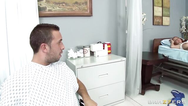 Description:Sophie gets admitted into the hospital for depression and has to share a room with Keiran, who's suffering from a bad case of the blue balls. Sophie's handed the remote to the tv while Keiran takes a nap and she stumbles on some porn. Keiran then wakes up to find a naked Sophie giving herself the rub down. Turns out the patients cure each other with some hard fucking!