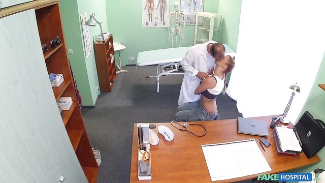 Description:So I make a call home and tell my wife I'll be home right after I see this next patient. I was looking forward to it! Good food and nice bottle of wine, the perfect relaxed evening! Then this hot redhead walks in to the room. Sure she catches my eye, but I'm a professional, I quickly get rid of any fantasies that might be going through my mind. So, we start talking and it turns out she's the sister of a nurse that used to work here! A nurse that I really did like and became, shall we say, very familiar with. It seems that she knows about me and her sister, every last detail. She makes it abundantly clear that she would like to have sex...with me. I, being the consummate professional, try to take her heart rate. But as I do, she starts to touch my cock, just gently rubbing it, I put down my stethoscope and kiss her! I get her on the bed and take off her clothes, she had an amazing body! I start to fuck her, me still fully clothed. I loved looking at her bouncing tits! I whip off my clothes lie down and let her give me the best blowjob! She really had been waiting for this for a long time! When I've had just enough, I get up put her on the bed and start fucking her hard. I fucked her everywhere...on the bed, the desk. And then at the end I give her a beautiful cream pie!
